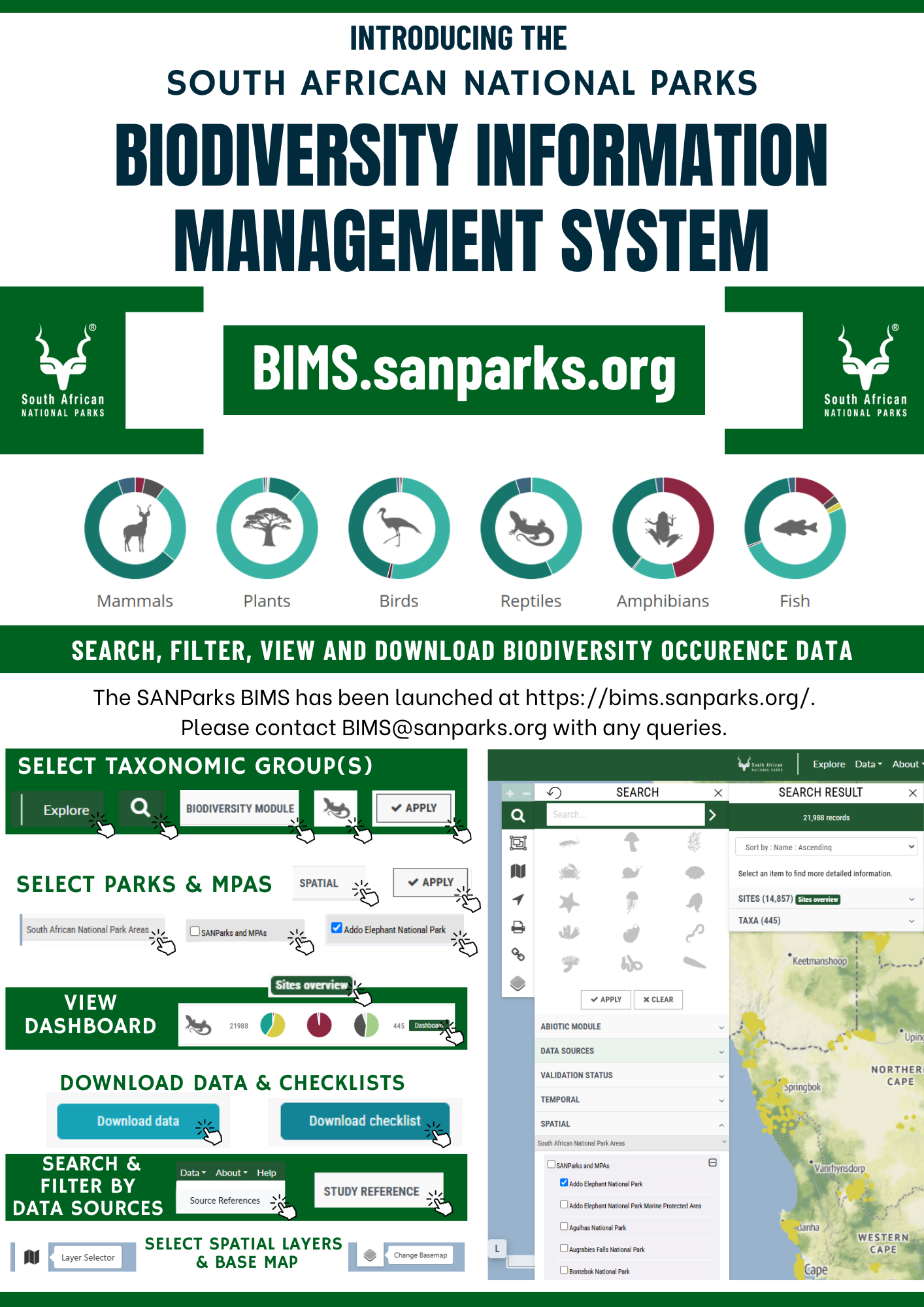 Please email BIMS@sanparks.org if you require any assistance with using the SANParks BIMS.